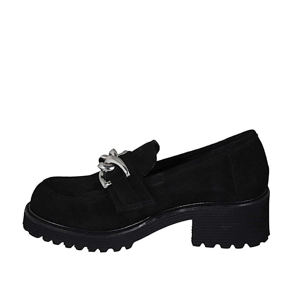 Stivaletto da donna con cerniera, cinturino ed elastico in camoscio e vernice nera tacco 5
