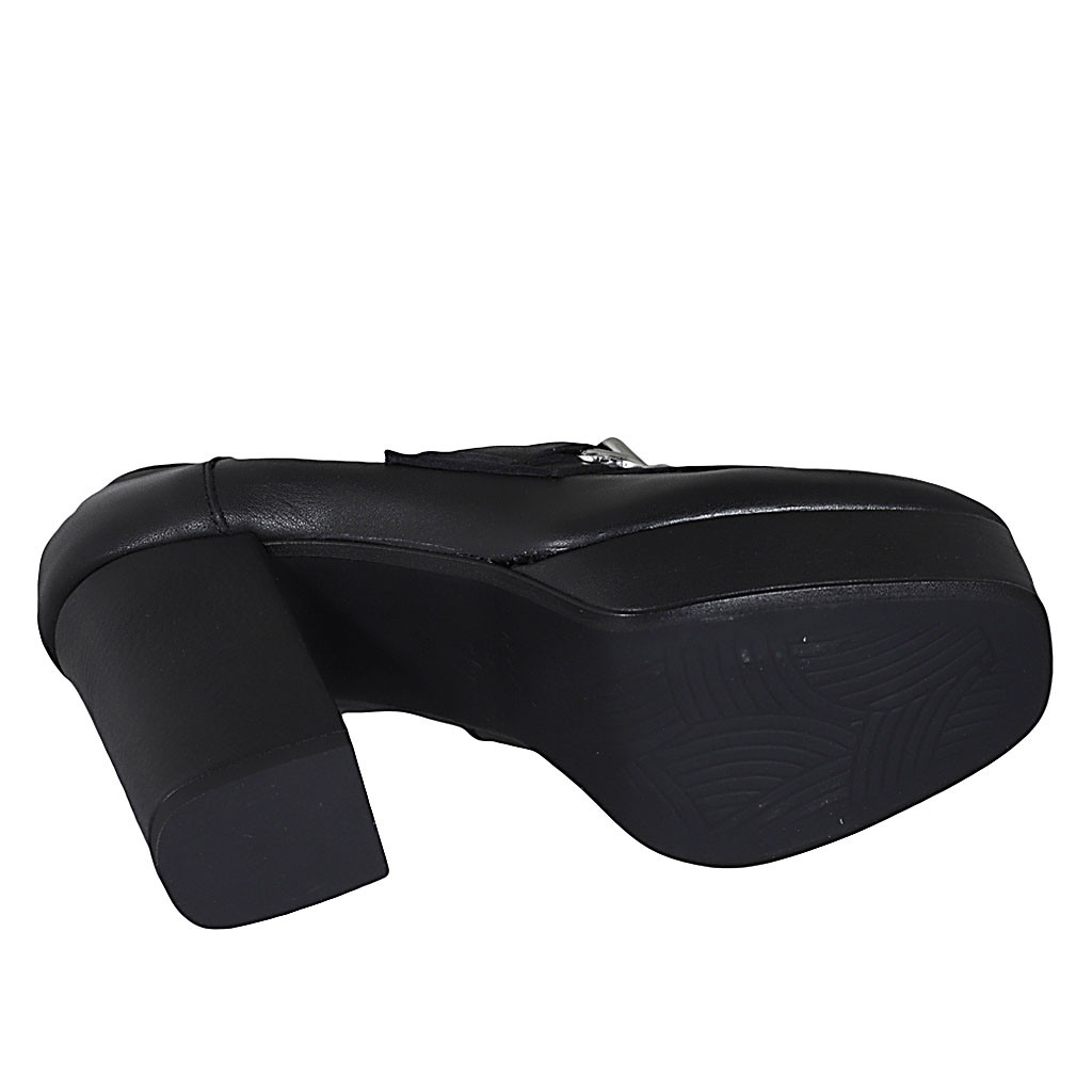 Mocassino da donna in pelle nera con catena e plateau tacco 10 - Misure disponibili: 43