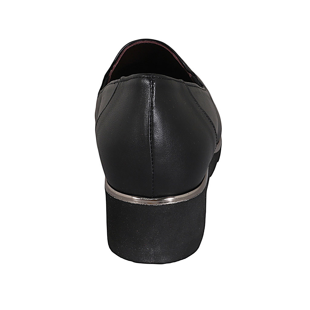 Mocassino da donna con plantare estraibile ed elastici in pelle nera zeppa 4 - Misure disponibili: 31