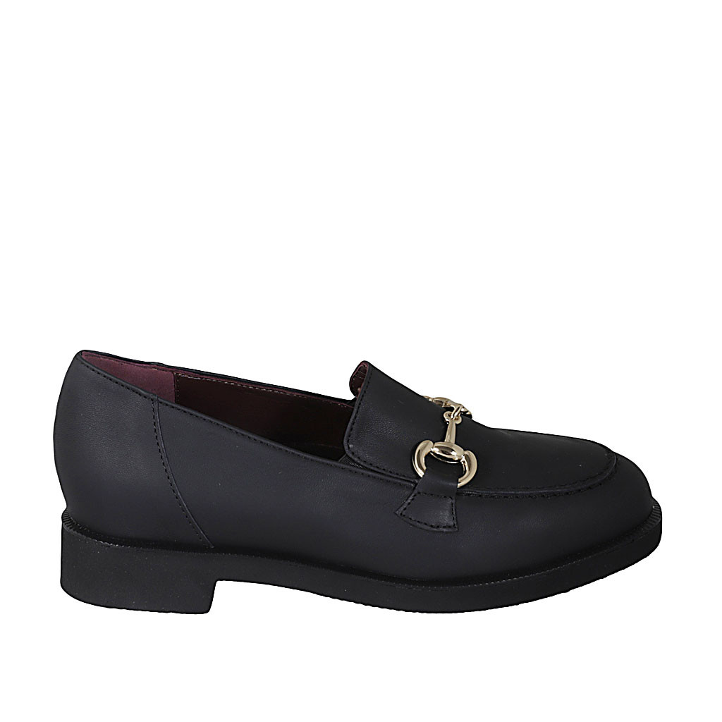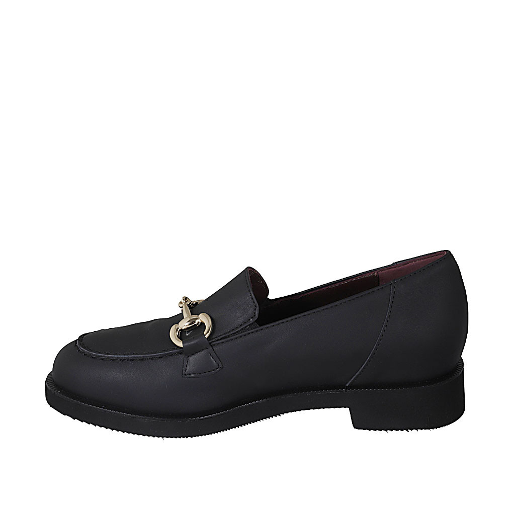 Mocassino da donna con accessorio e plantare estraibile in pelle nera tacco 3 - Misure disponibili: 31, 32