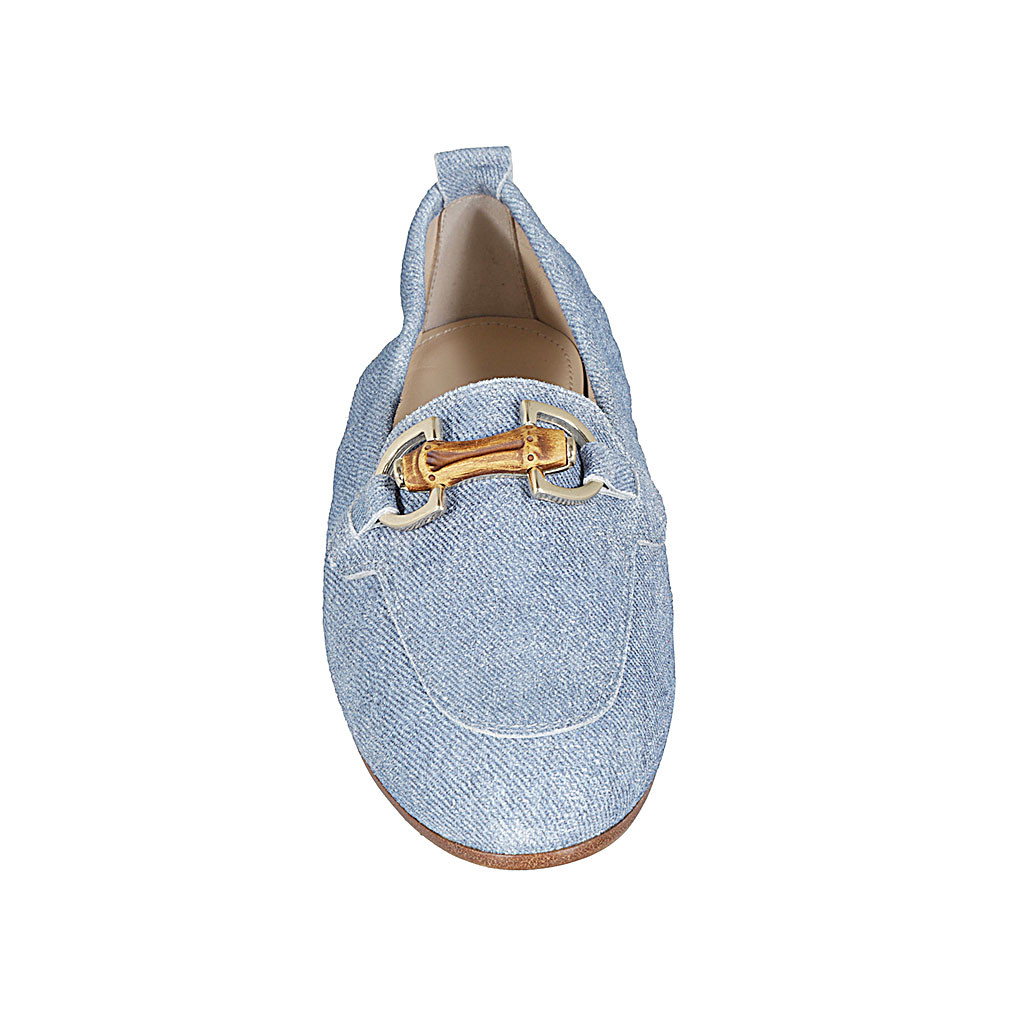 Mocassino da donna con catena ed elastico in camoscio nero tacco 4