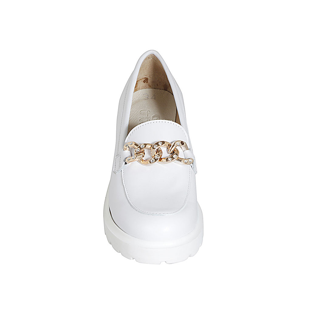 Mocassino da donna in pelle bianca con catena tacco 5 - Misure disponibili: 43, 44