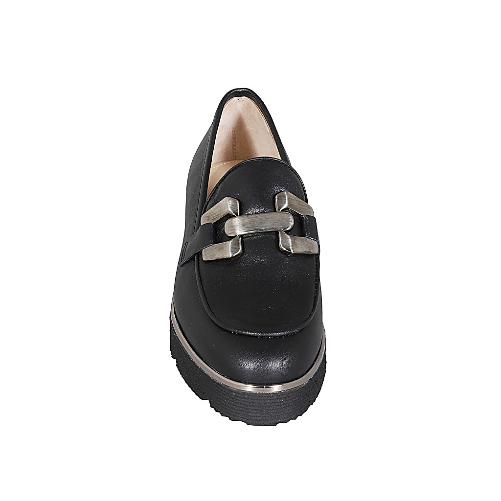 Mocassino da donna con accessorio in pelle nera zeppa 4 - Misure disponibili: 43, 45, 46