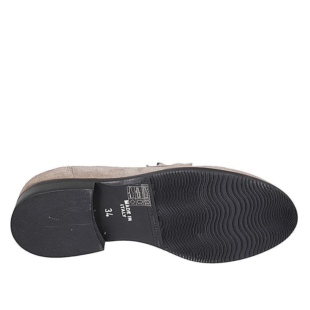 Mocassino da donna con accessorio in camoscio grigio tortora tacco 3