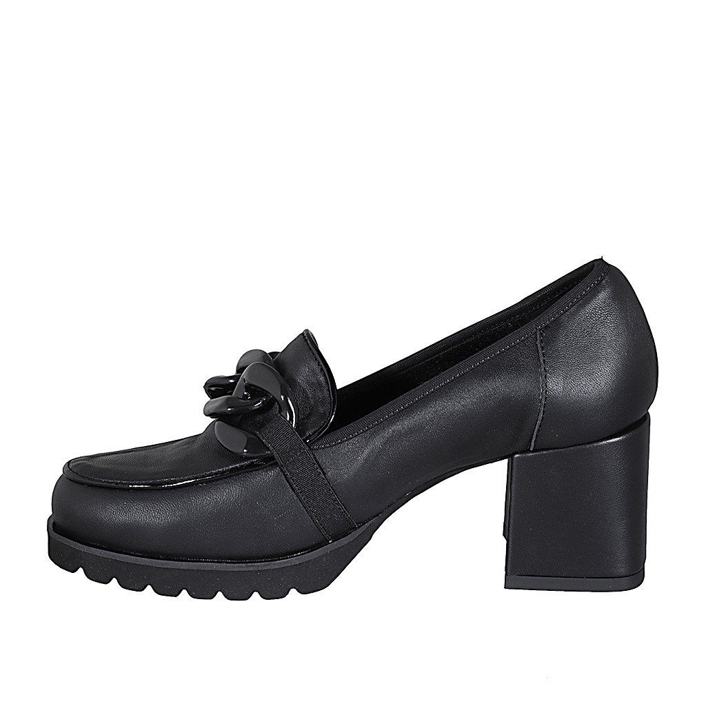 Mocassino da donna in pelle nera con catena tacco 6 - Misure disponibili: 43, 45