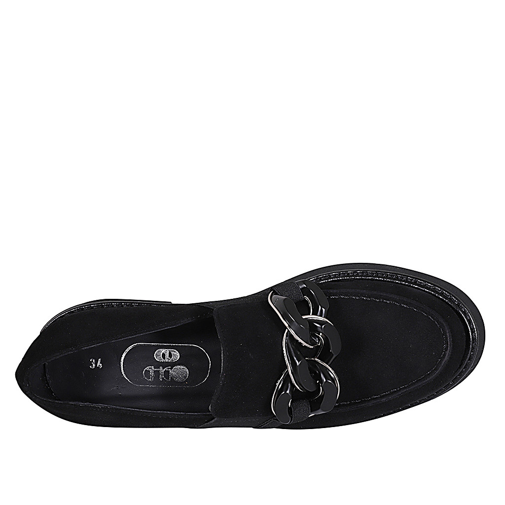 Sabot con strass di cristalli da donna in camoscio nero tacco 8