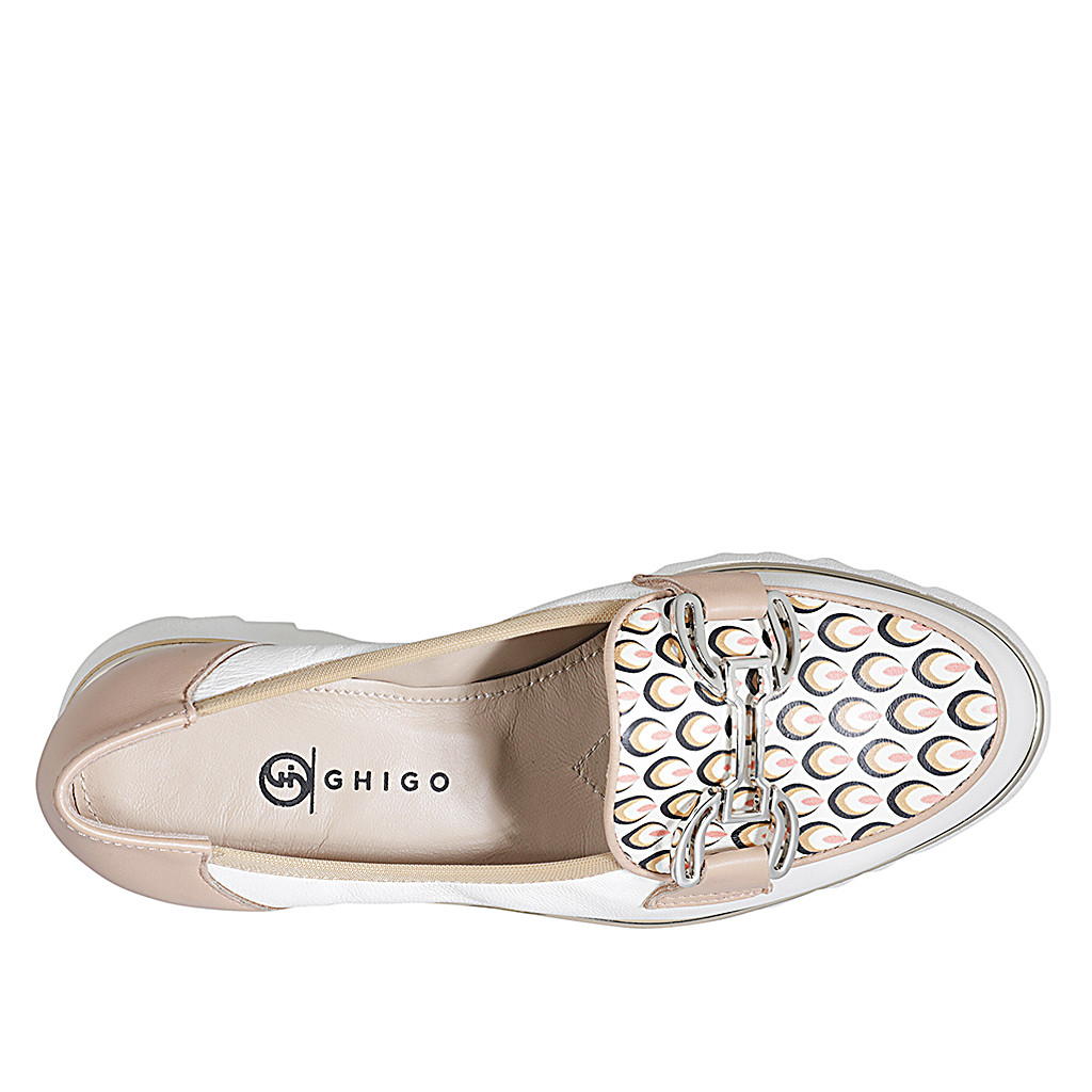 Mocassino da donna con accessorio in pelle bianca, nude e stampata multicolore zeppa 4 - Misure disponibili: 35, 42, 45