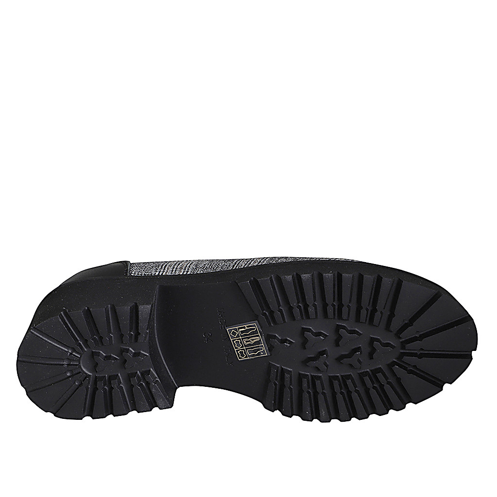 Mocassino da donna con accessorio in pelle nera e tessuto principe di Galles grigio tacco 4 - Misure disponibili: 33, 35, 42, 43, 44, 45