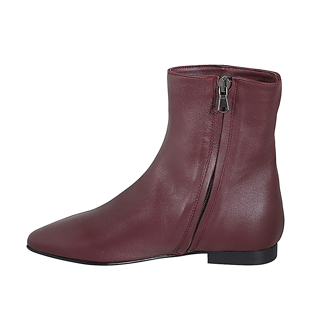 Stivaletto a punta da donna con cerniera interna in pelle bordeaux con tacco 2