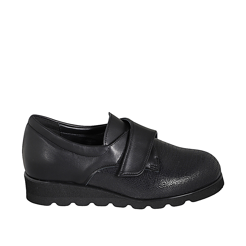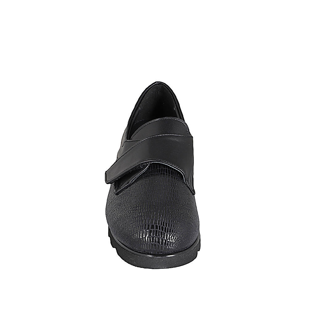 Stivaletto da donna in pelle e pelle stampata testa di moro con cerniera, elastico e plantare estraibile zeppa 4