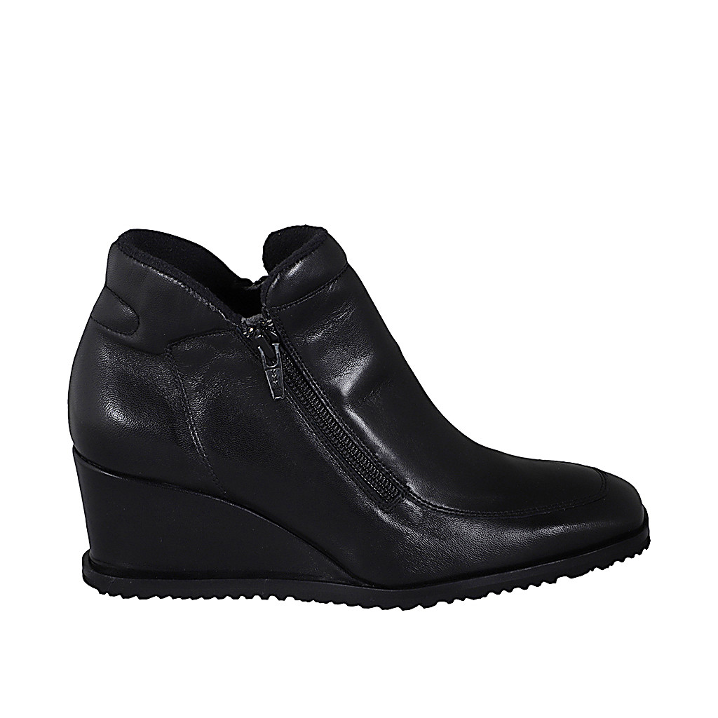 Stivaletto da donna con cerniere in pelle nera tacco 3