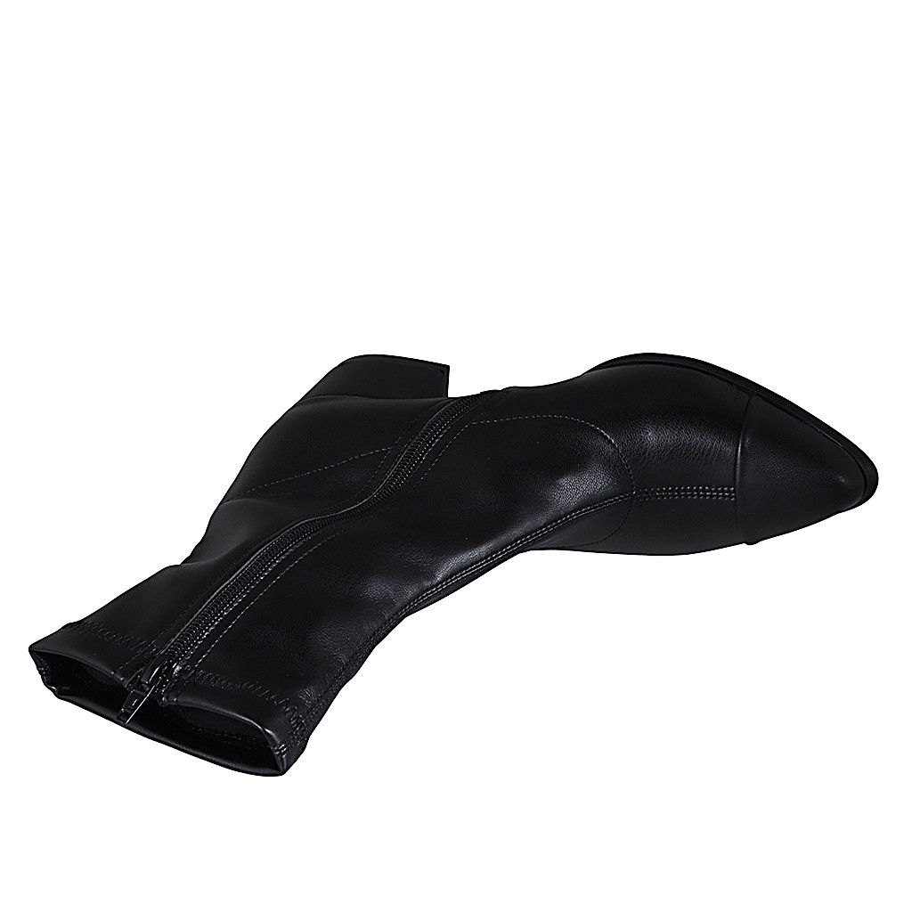 Stivaletto a punta da donna in pelle e pelle elasticizzata nera con cerniera e puntale tacco 5 - Misure disponibili: 35, 43, 45