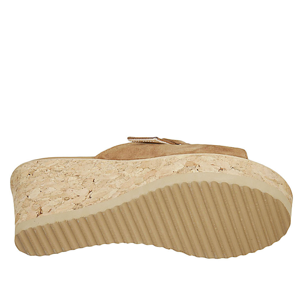 Sabot da donna con fibbia in camoscio e pelle color cuoio zeppa 7 - Misure disponibili: 42