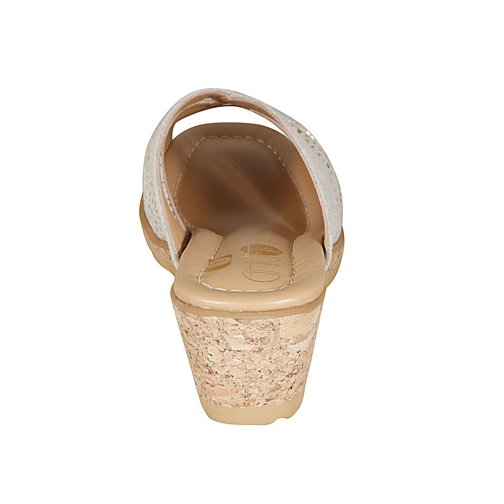 Sabot da donna in pelle stampata platino e camoscio beige stampato a pois platino zeppa 6 - Misure disponibili: 43, 44