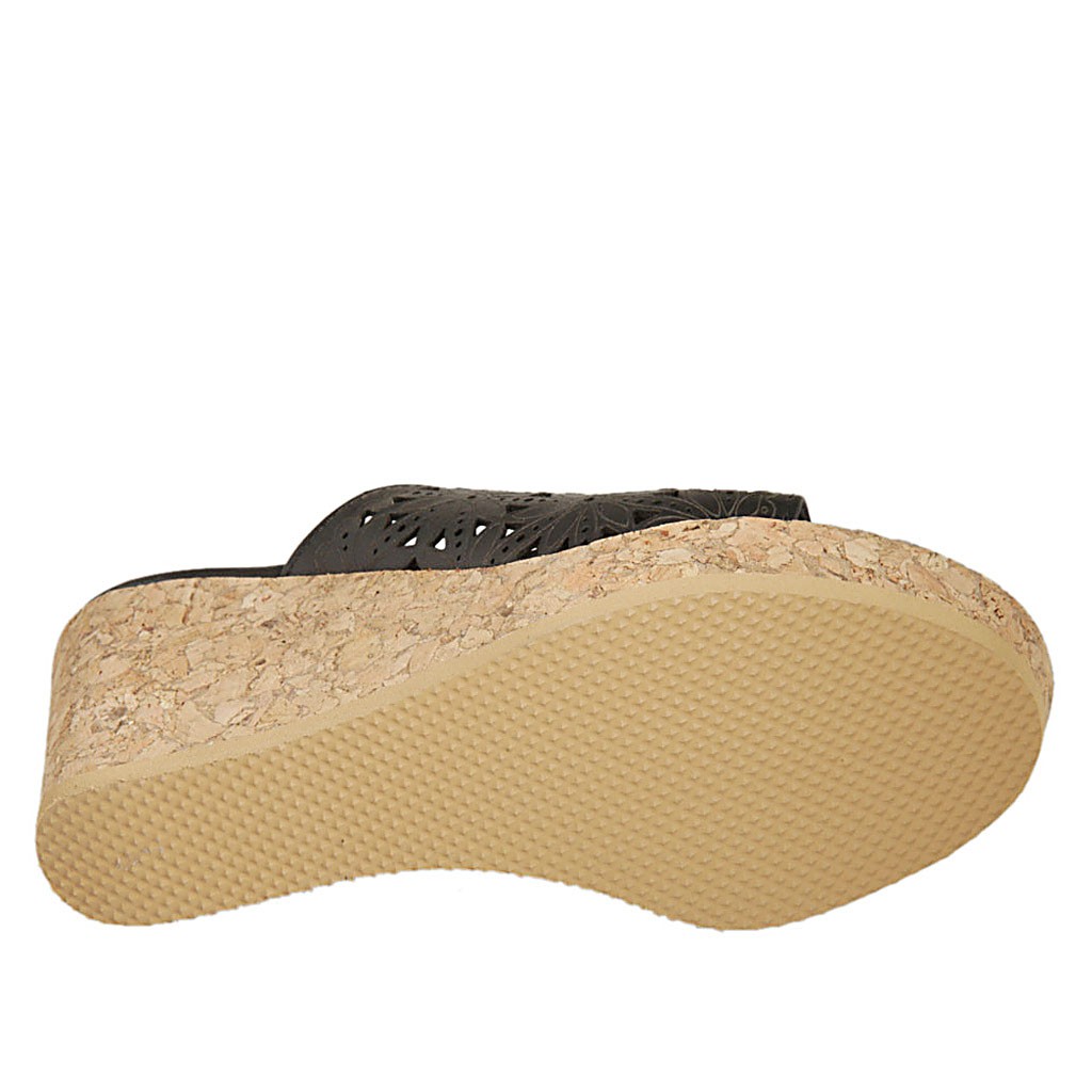 Mocassino da donna con plantare estraibile ed elastici in pelle nera zeppa 4