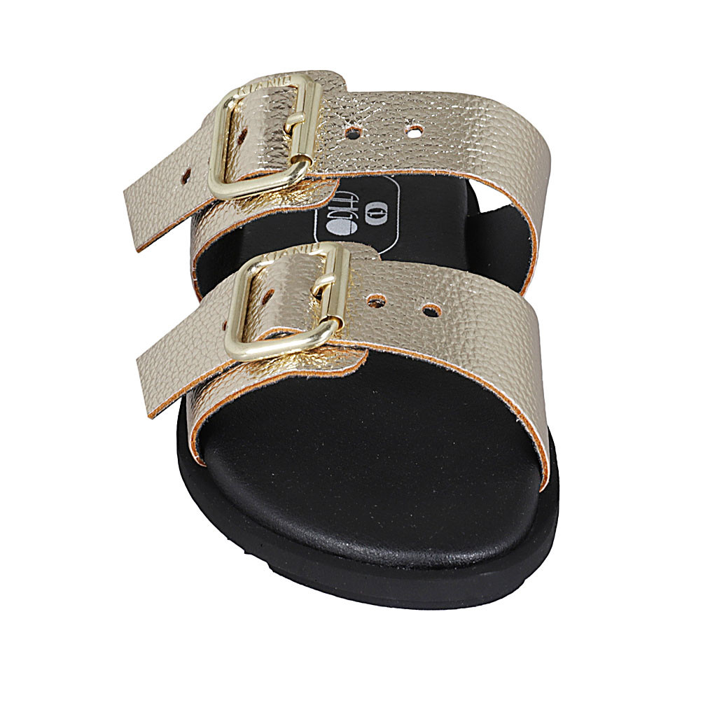 Sabot da donna con fibbie regolabili in pelle stampata laminata platino zeppa 1 - Misure disponibili: 32