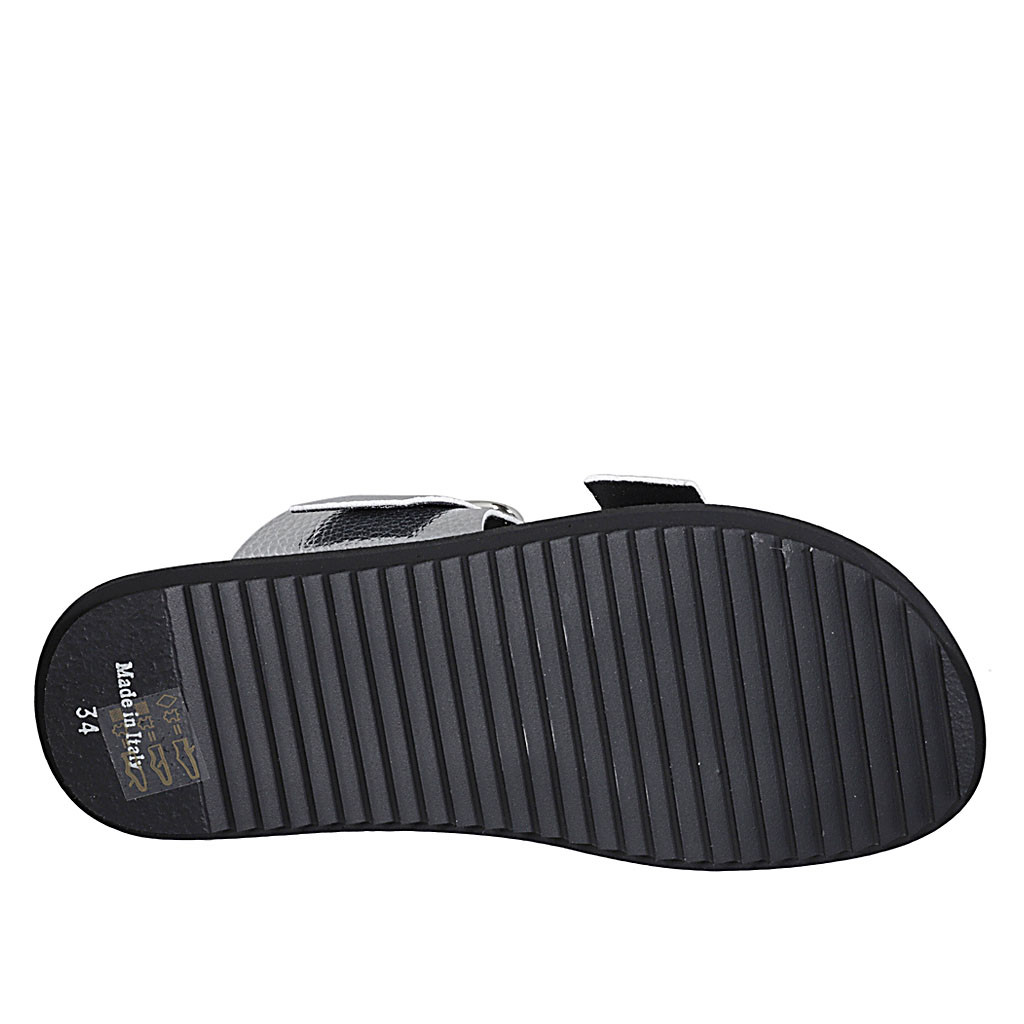 Sabot da donna con fibbie regolabili in pelle stampata laminata argento zeppa 1 - Misure disponibili: 42