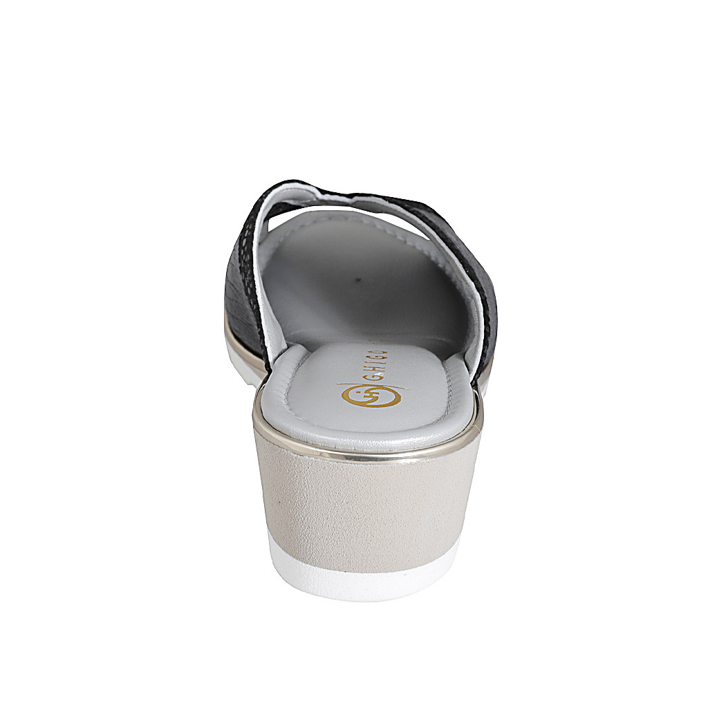 Sabot da donna in pelle stampata e camoscio stampato nero zeppa 4 - Misure disponibili: 35