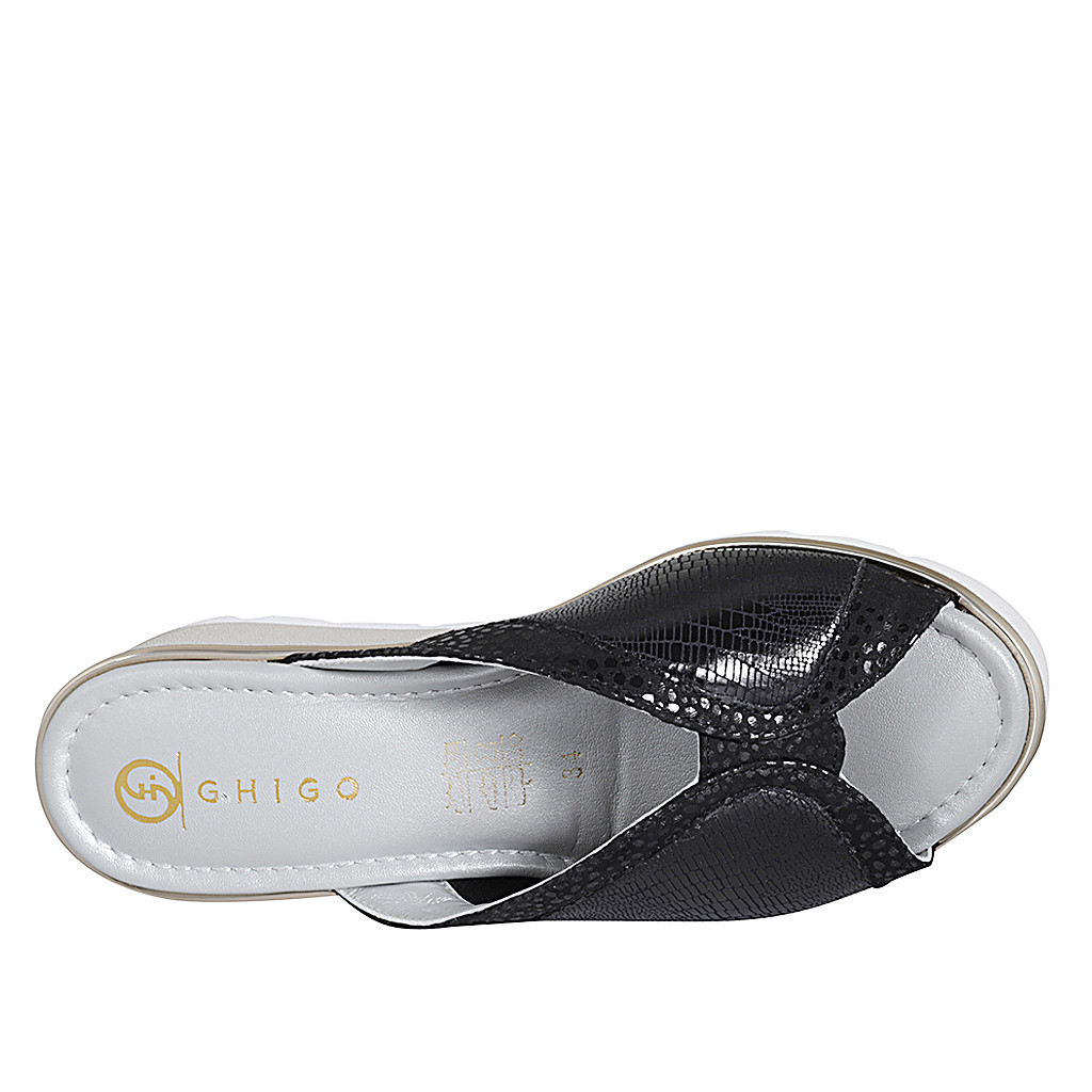 Sabot da donna in pelle stampata e camoscio stampato nero zeppa 4