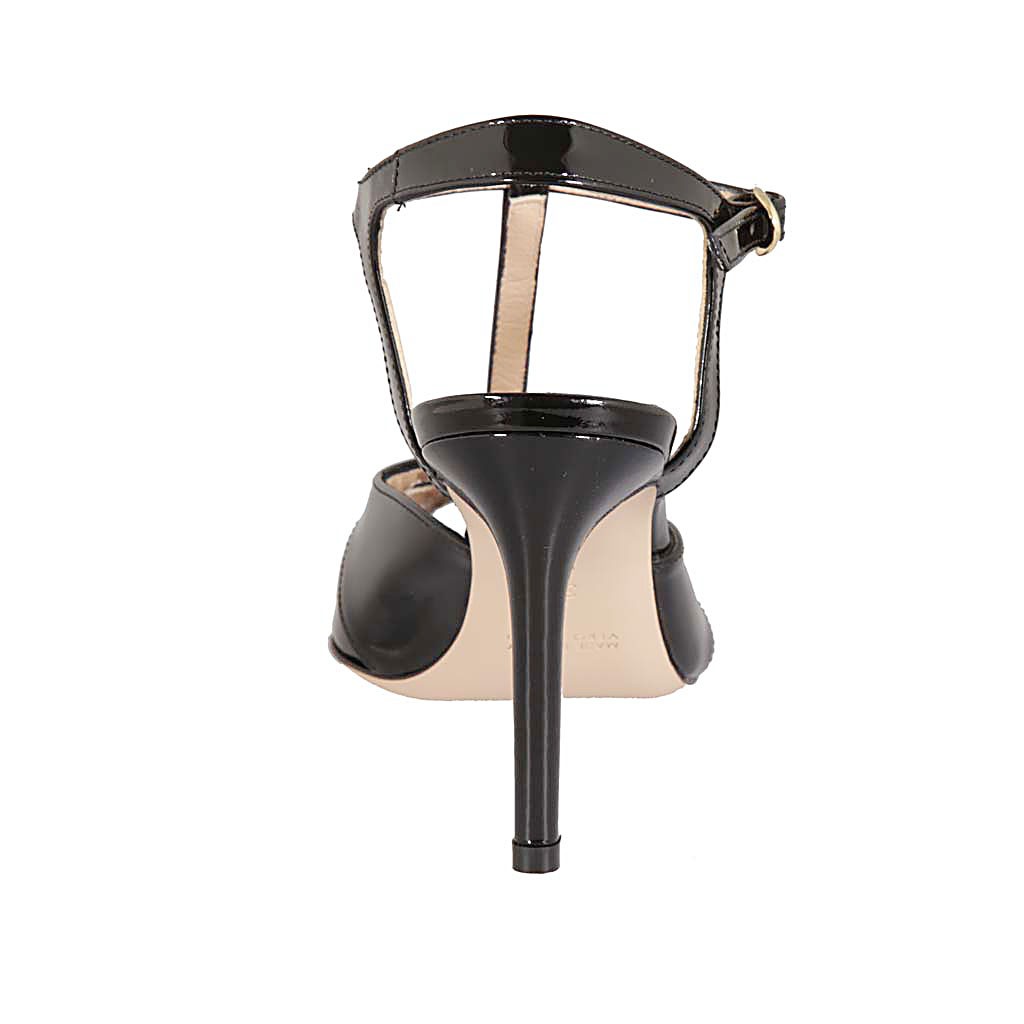 Sandalo da donna con cinturino in vernice nera tacco 8 - Misure disponibili: 32