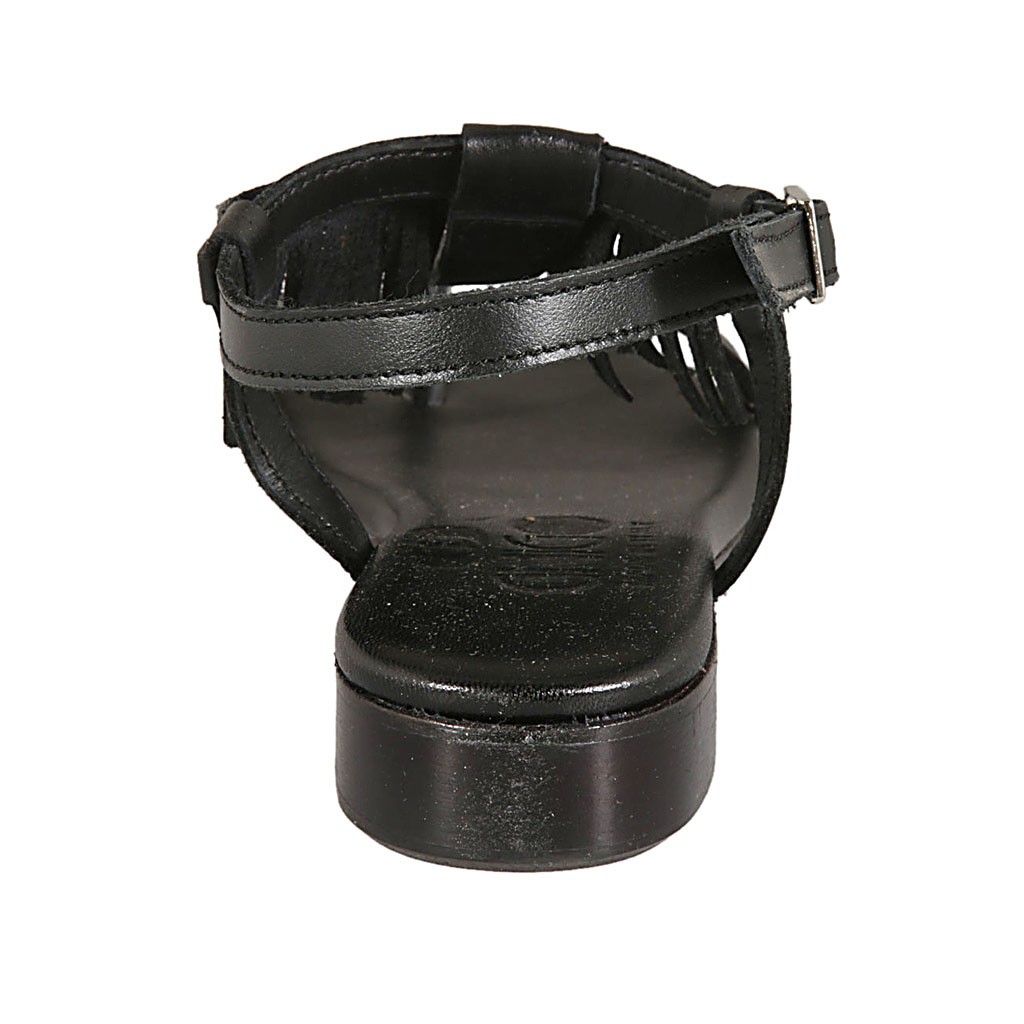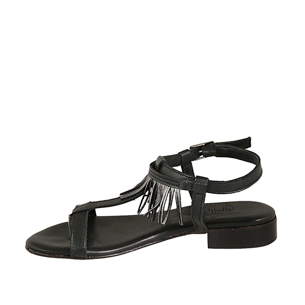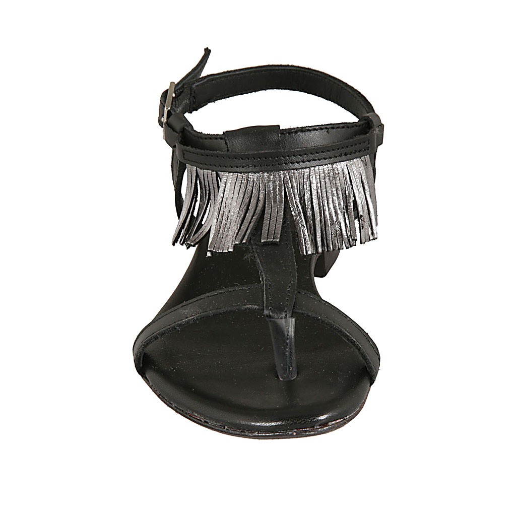 Sandalo infradito da donna con cinturino in pelle nera e frangia color grigio acciaio tacco 2 - Misure disponibili: 33