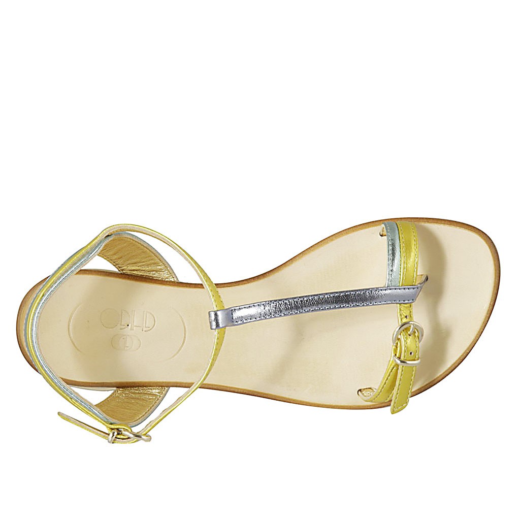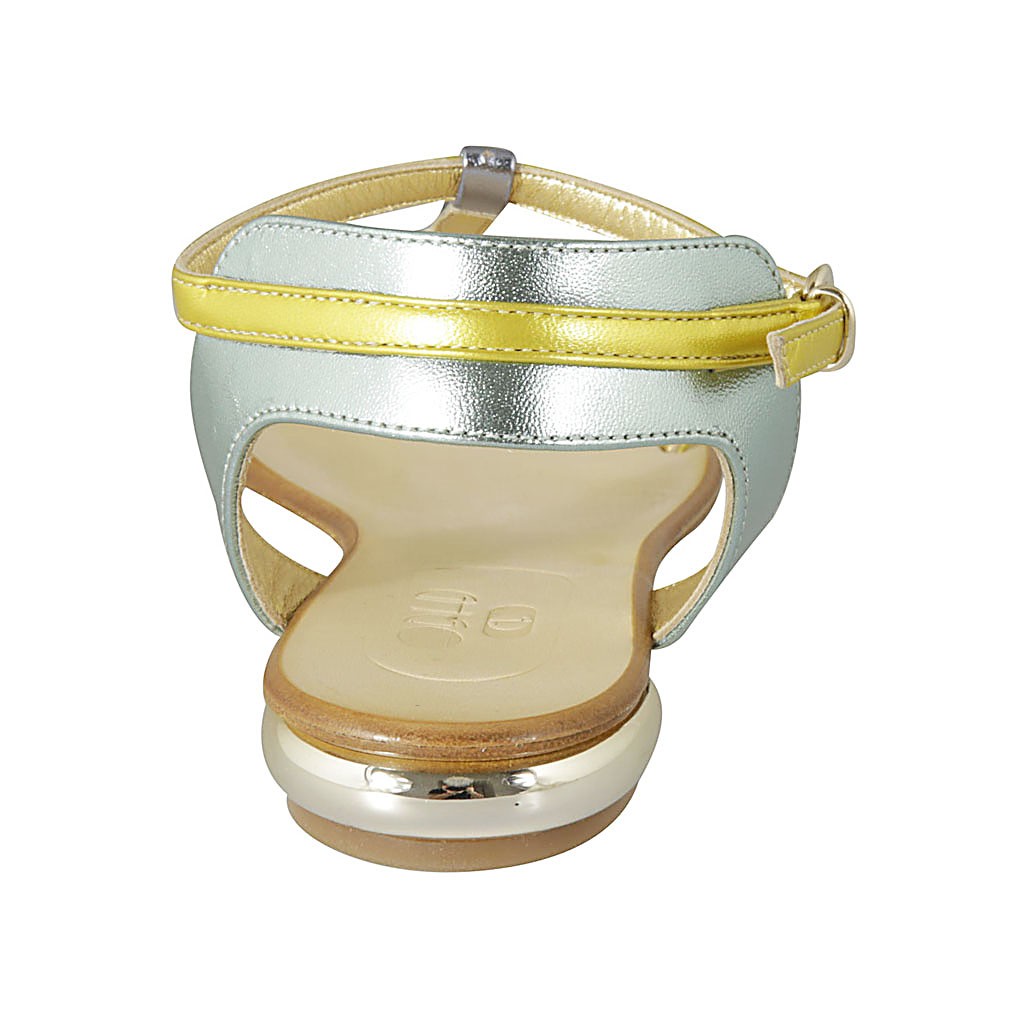 Sandalo infradito con cinturino da donna in pelle laminata gialla, verde e turchese tacco 1 - Misure disponibili: 42