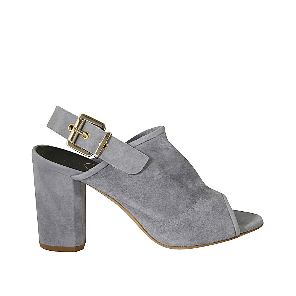 Sandalo da donna in camoscio nero e pelle laminata argento con cinturino, plateau e tacco 9
