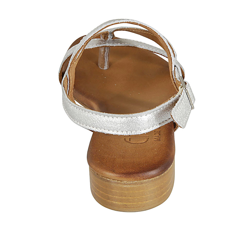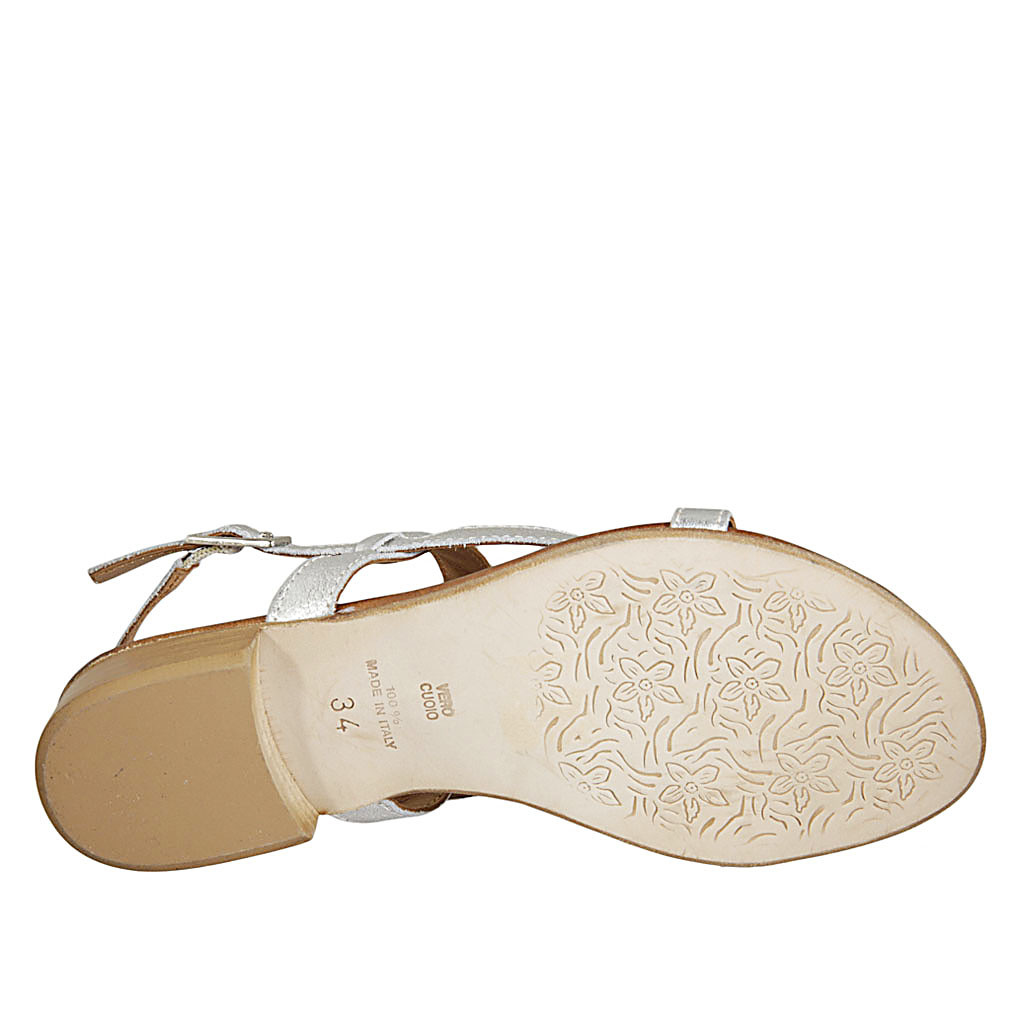 Sandalo infradito da donna in pelle laminata argento tacco 2 - Misure disponibili: 32