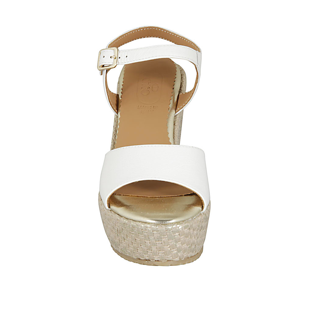 Sandalo da donna con cinturino e plateau in pelle bianca con zeppa rivestita in tessuto beige zeppa 9 - Misure disponibili: 42, 43, 45