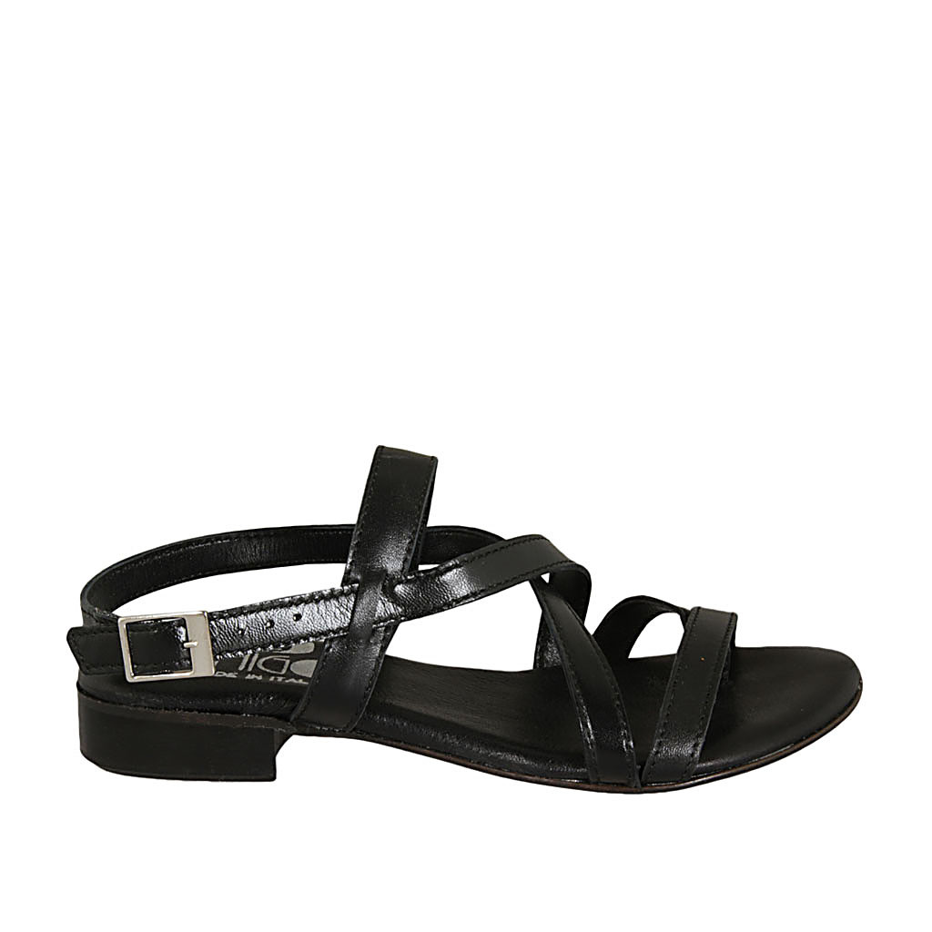 Sandalo infradito da donna in pelle nera tacco 2