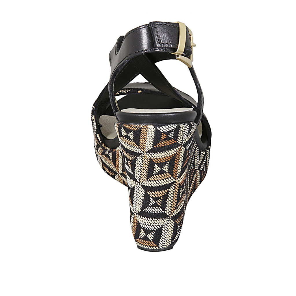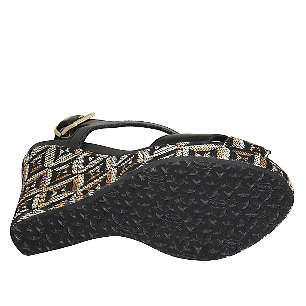 Sandalo da donna in camoscio e rafia blu con cinturino, plateau e zeppa 10