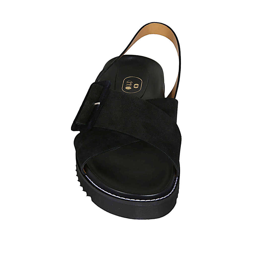 Sandalo da donna in camoscio nero con fibbia e zeppa 3 - Misure disponibili: 42
