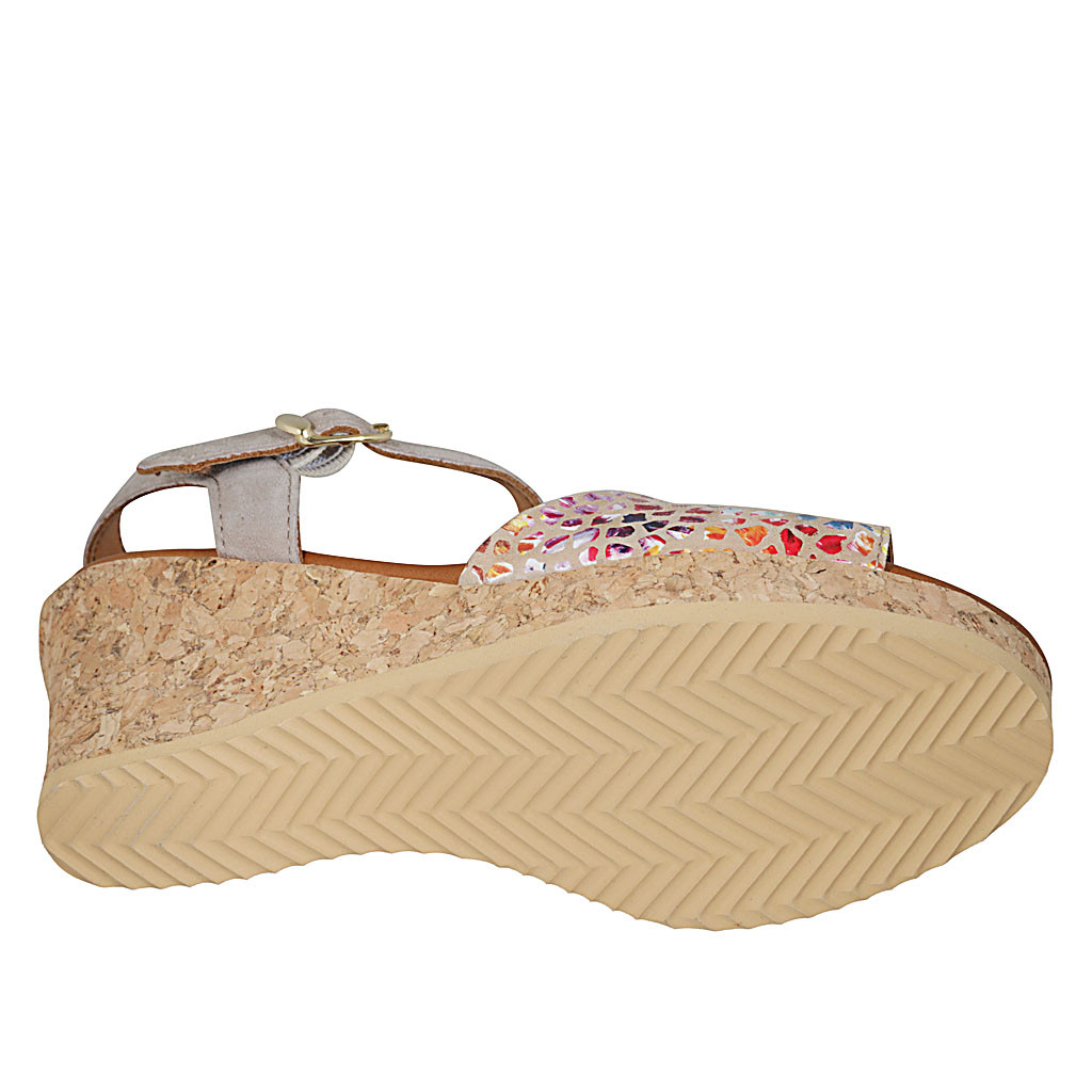 Sandalo da donna in camoscio beige e stampato mosaico con cinturino, plateau e zeppa 7 - Misure disponibili: 42, 43