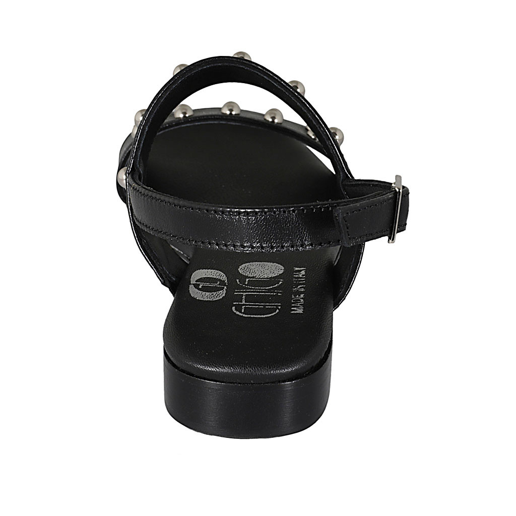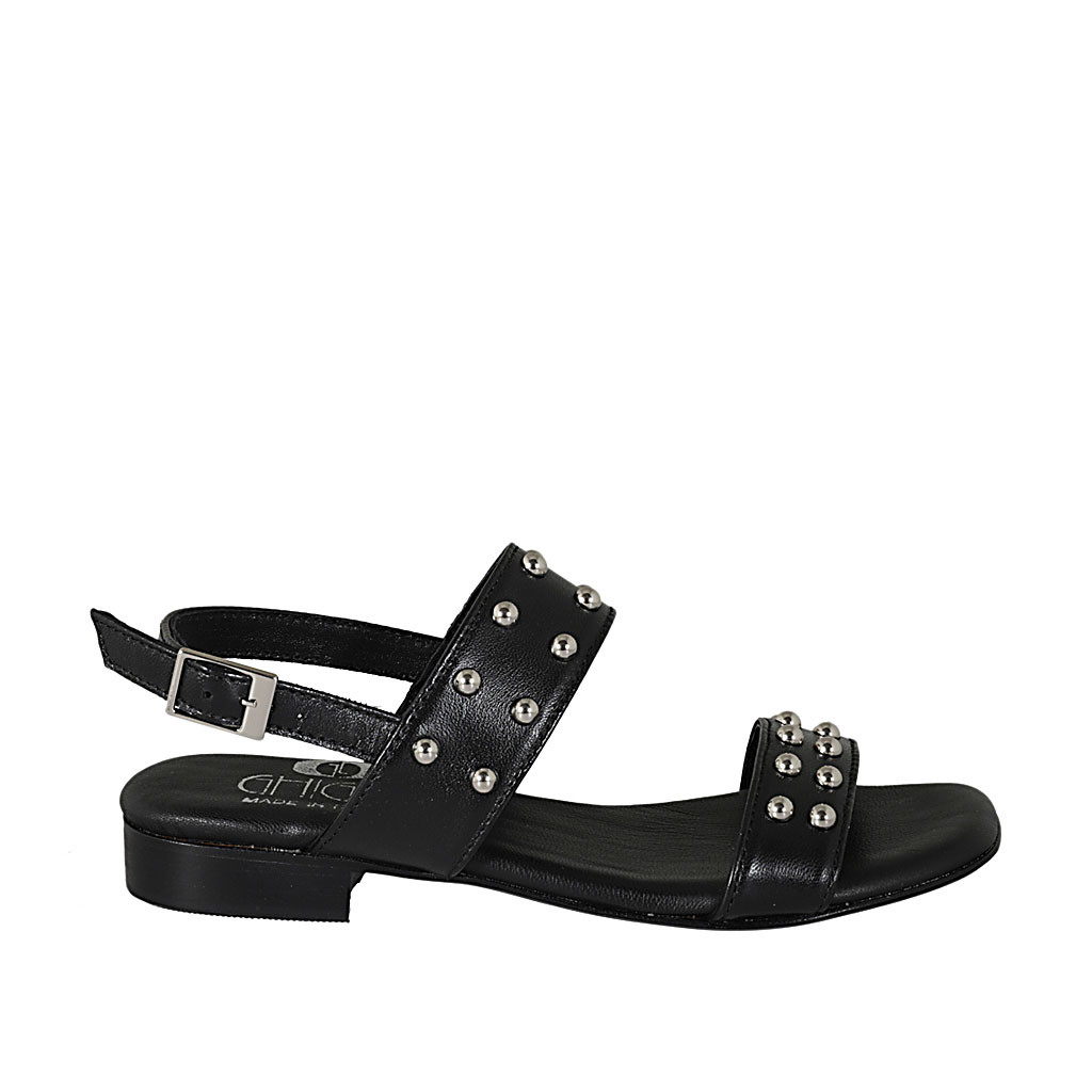 Sandalo da donna con borchie in pelle nera tacco 2 - Misure disponibili: 33