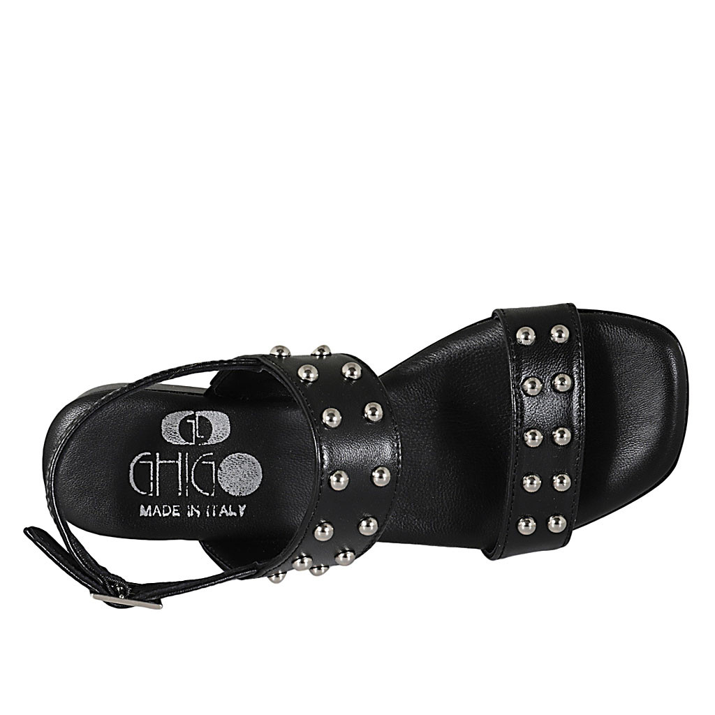 Sandalo da donna con borchie in pelle nera tacco 2