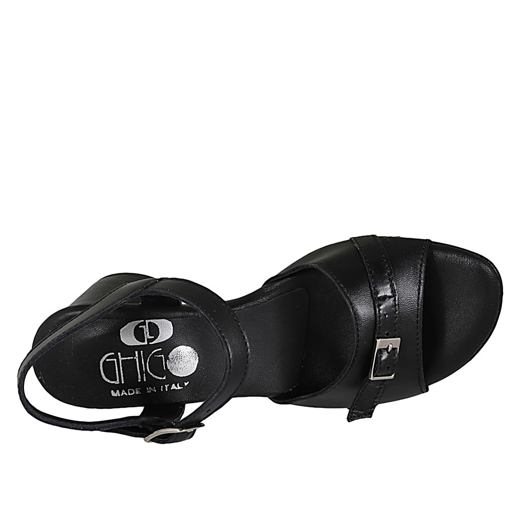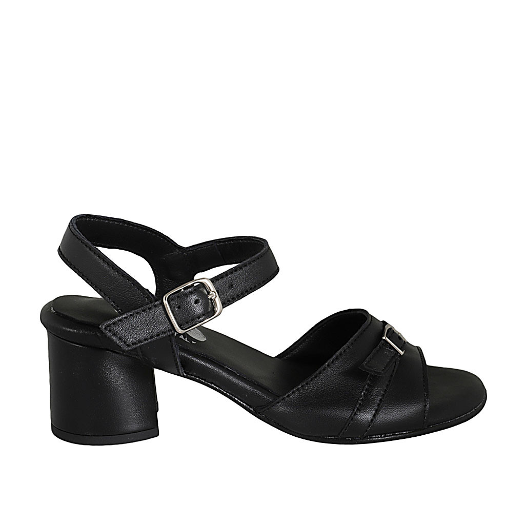 Sandalo da donna con cinturino e fibbietta in pelle nera tacco 5