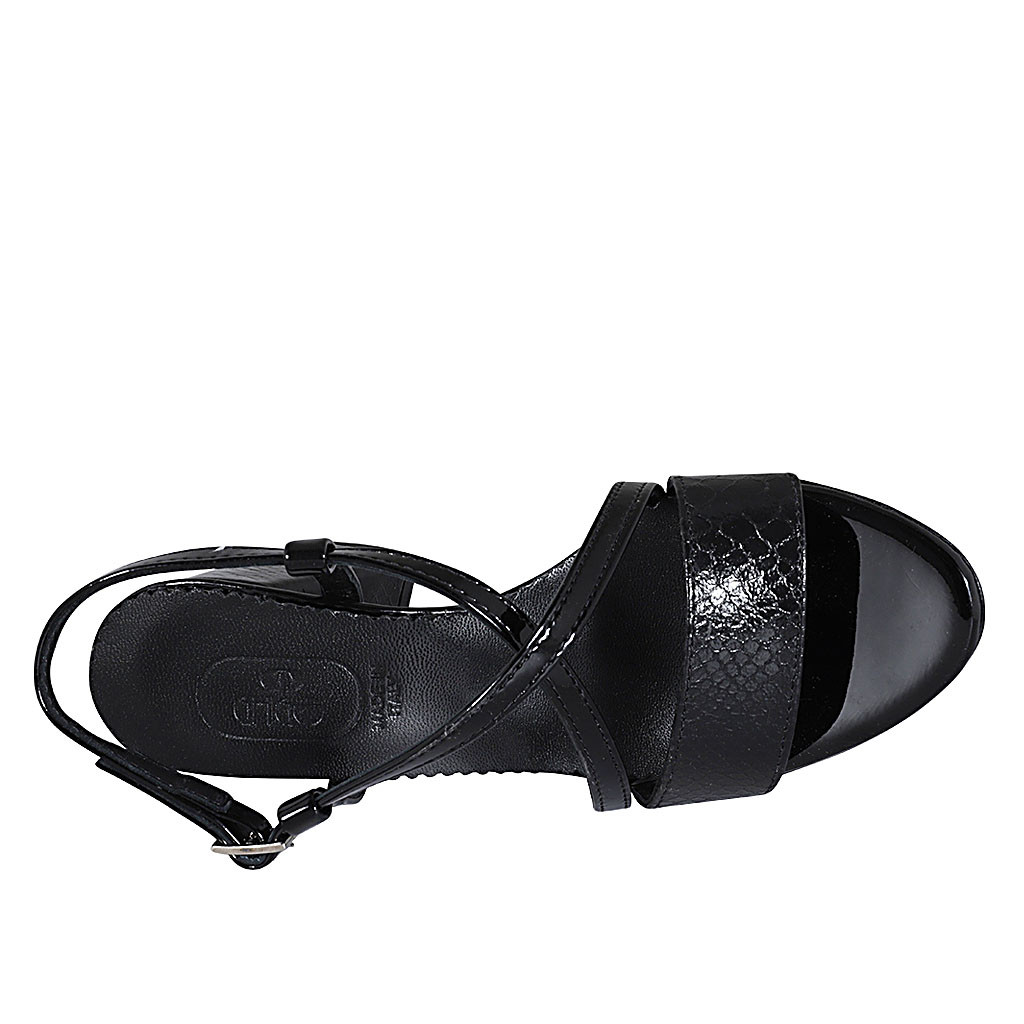 Sandalo da donna in vernice stampata nera tacco 7 - Misure disponibili: 43