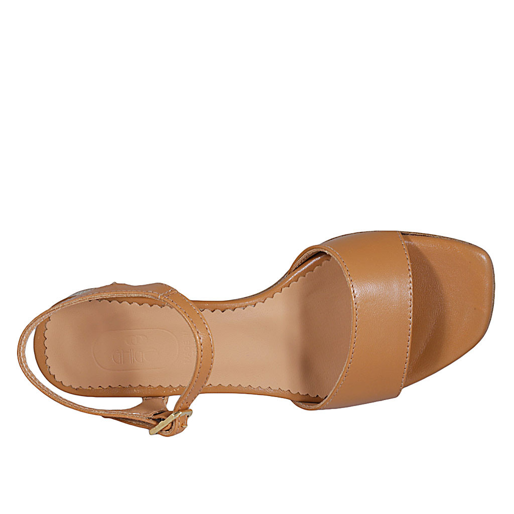 Mocassino da donna in pelle color cuoio con accessorio tacco 3