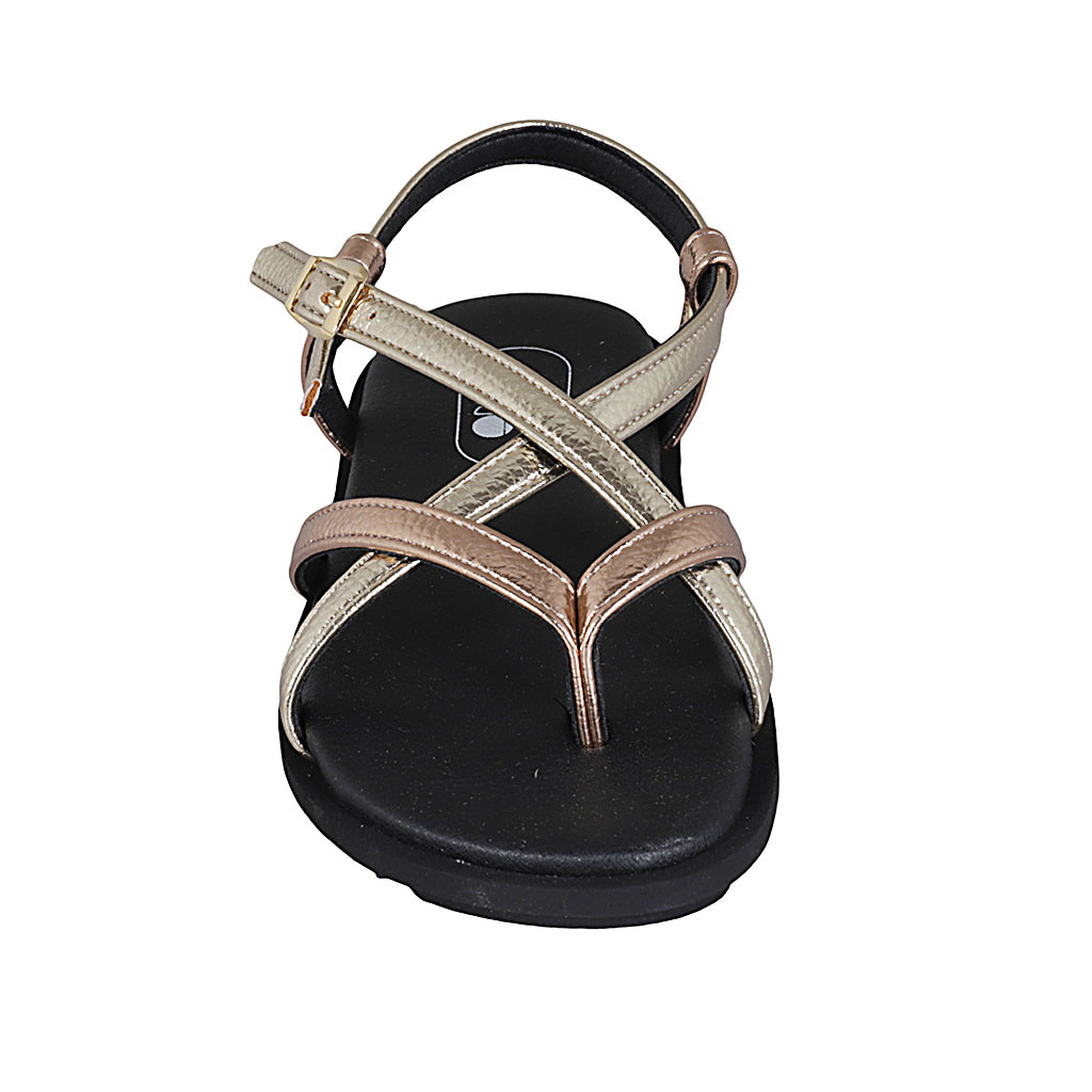 Sandalo infradito da donna con cinturino in pelle laminata rame e platino zeppa 1 - Misure disponibili: 42