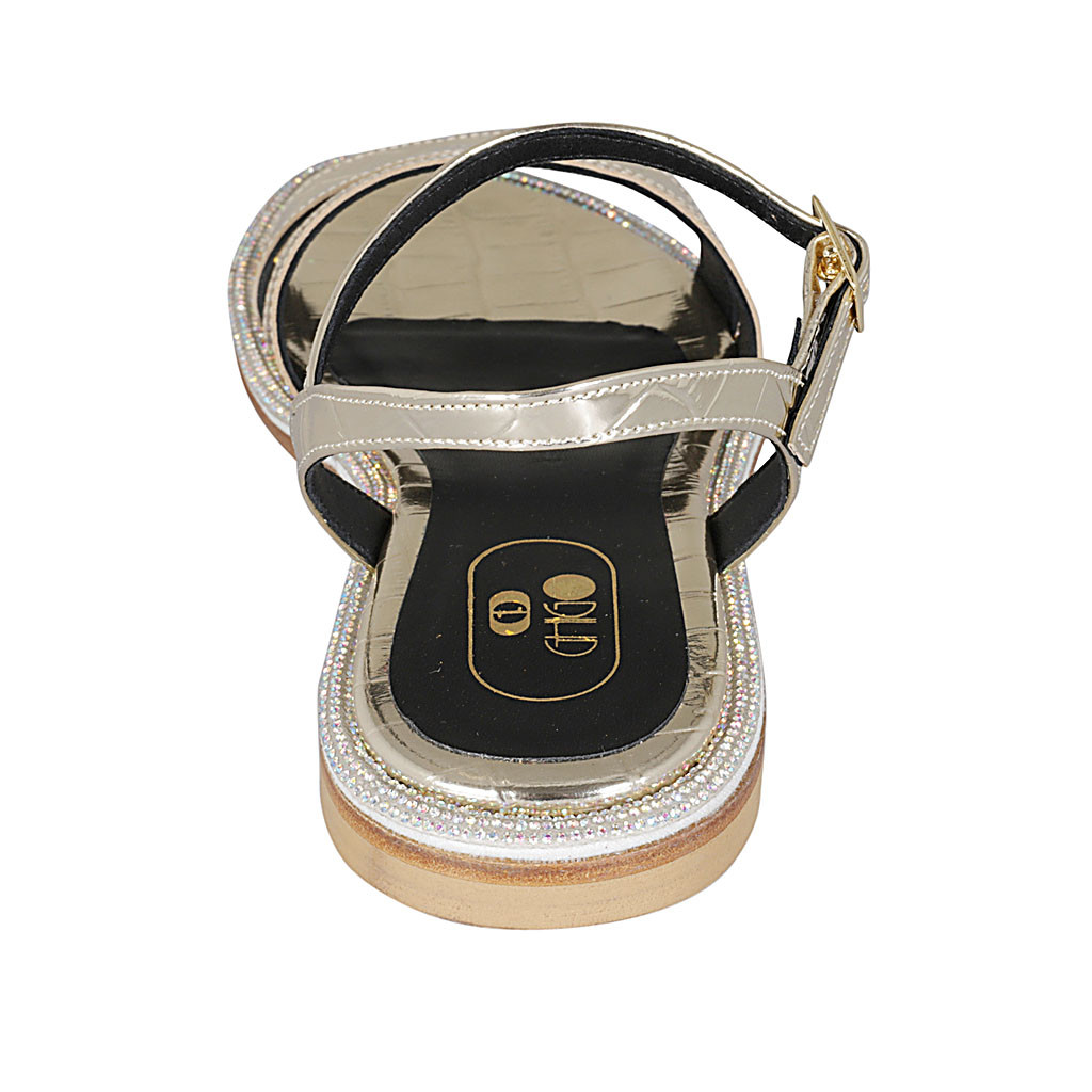 Sandalo infradito da donna in vernice stampata laminata argento con cinturino tacco 1