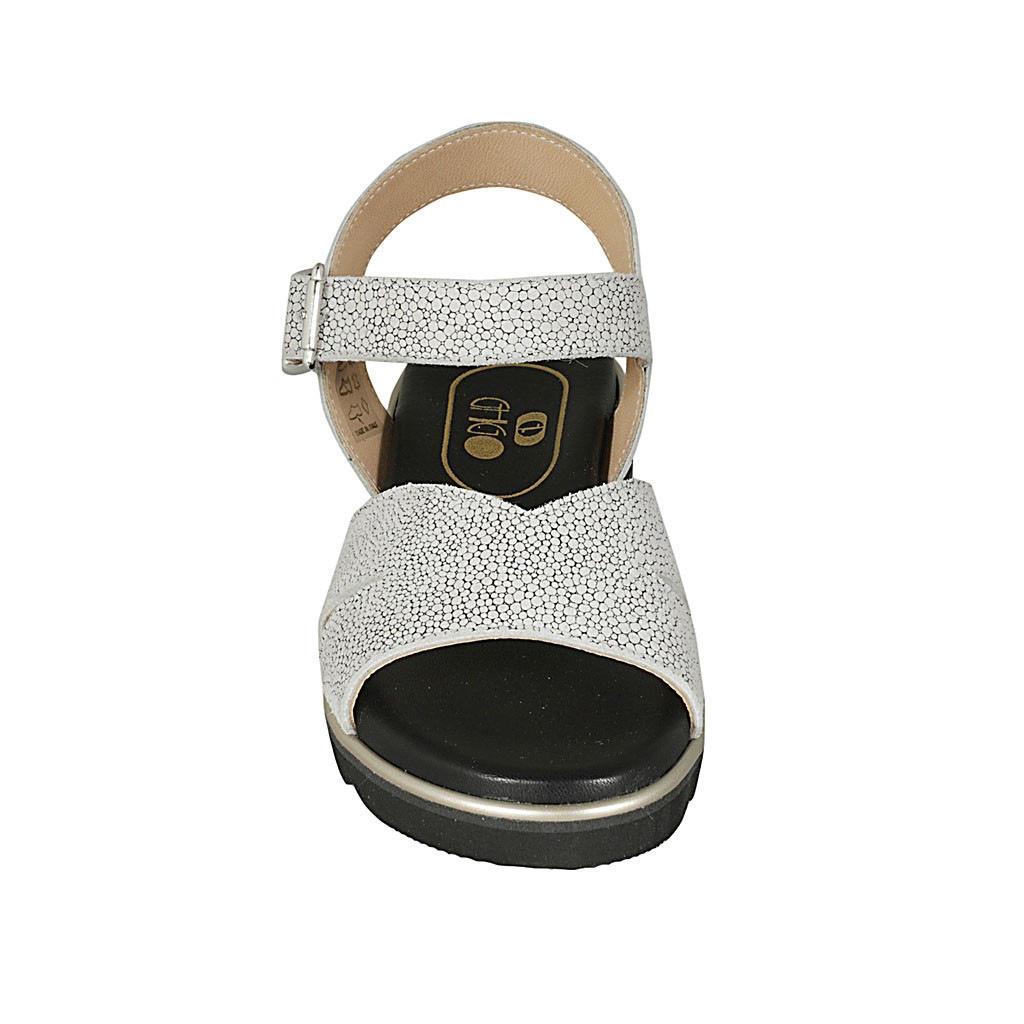 Sandalo da donna in pelle stampata bianca con cinturino zeppa 3 - Misure disponibili: 42, 43