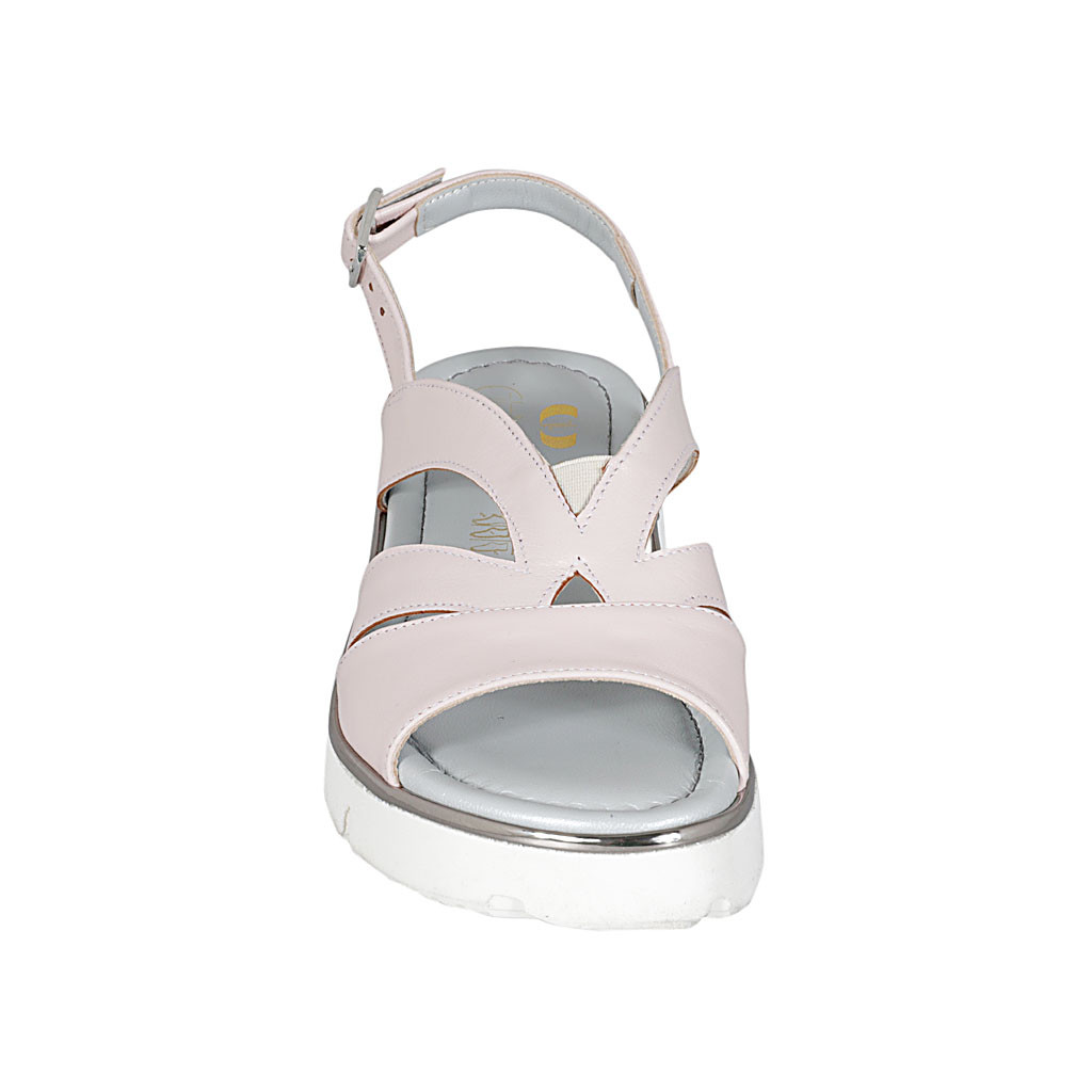 Sandalo da donna in pelle rosa con elastico zeppa 3 - Misure disponibili: 42