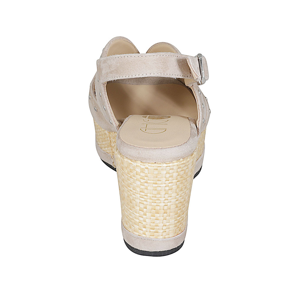 Sandalo da donna in camoscio taupe con borchie, plateau e zeppa rivestita 7 - Misure disponibili: 42