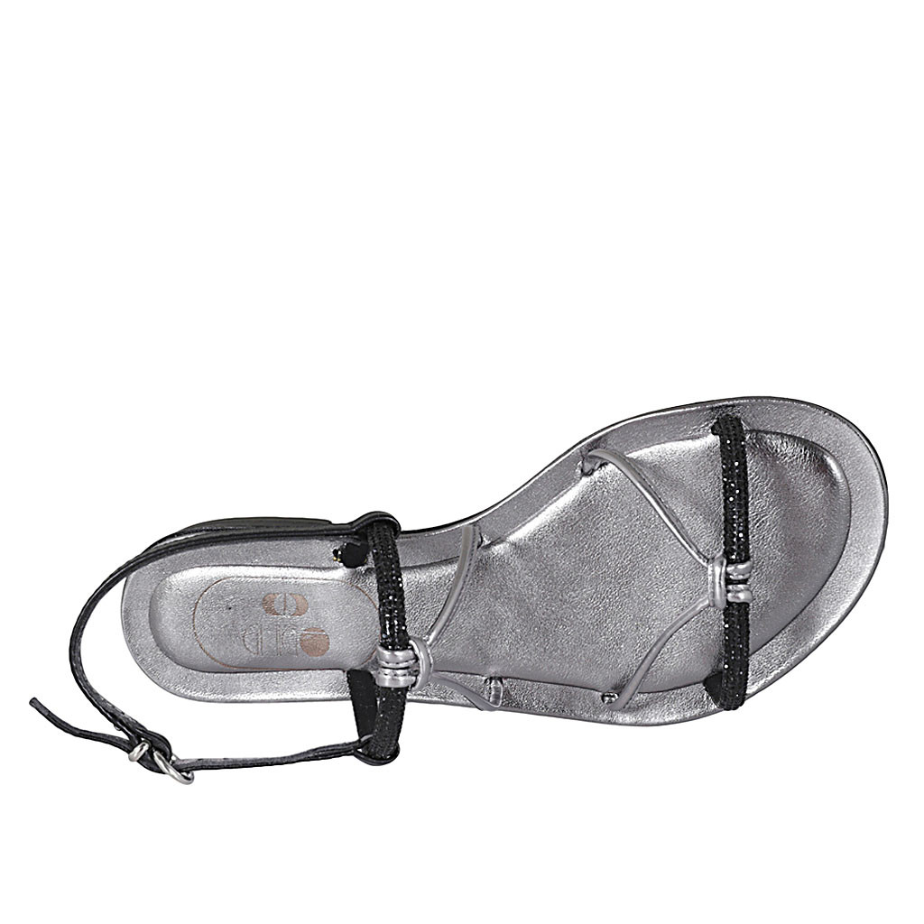 Sandalo da donna in pelle laminata nera con plateau e zeppa 9