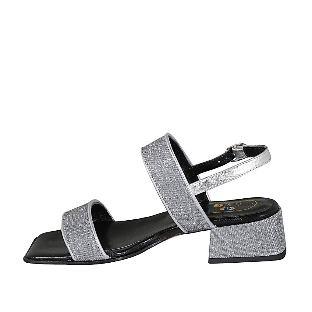 Sandalo da donna in tessuto glitterato e pelle laminata argento tacco 4 - Misure disponibili: 32, 45