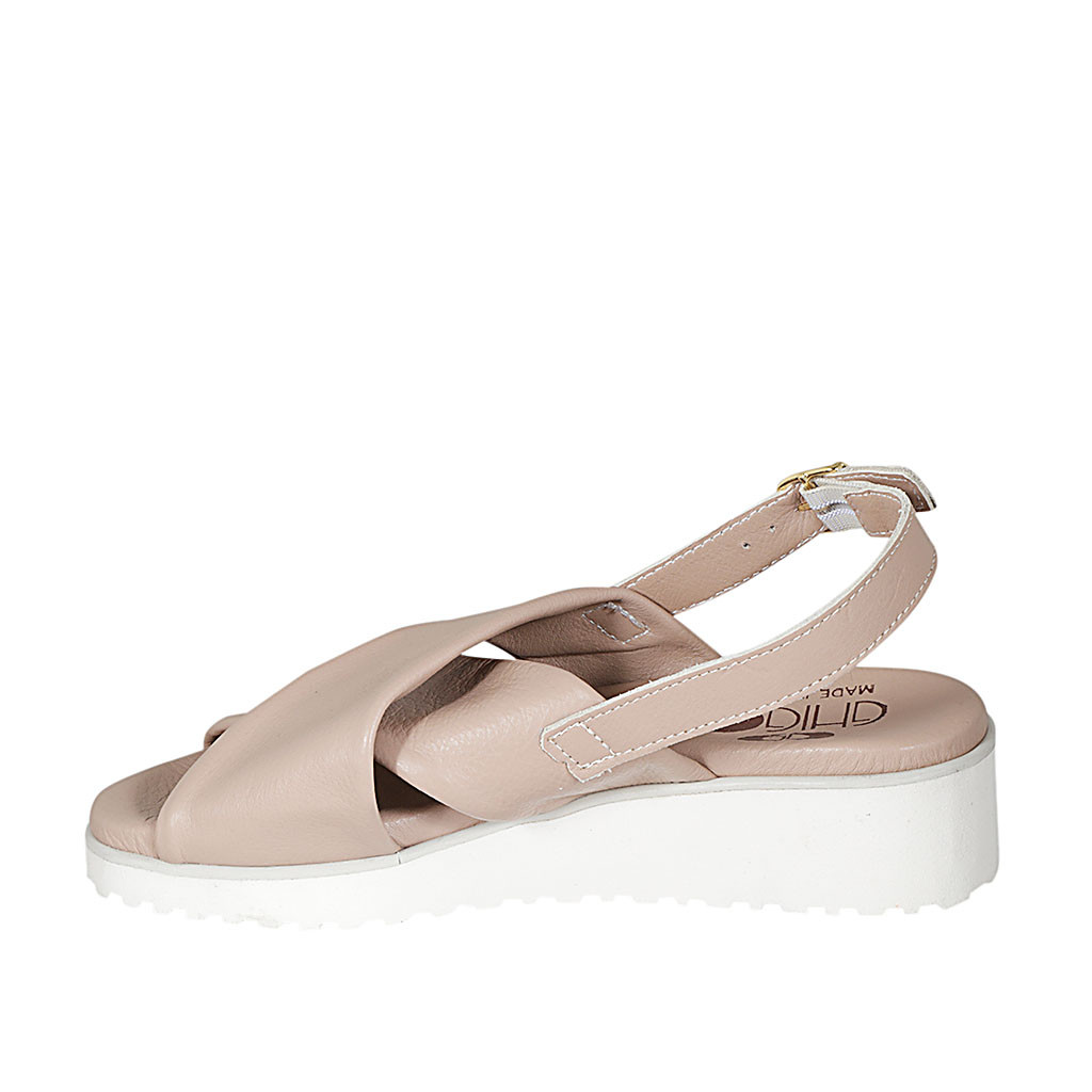 Sandalo da donna in pelle rosa chiaro zeppa 4 - Misure disponibili: 42, 43