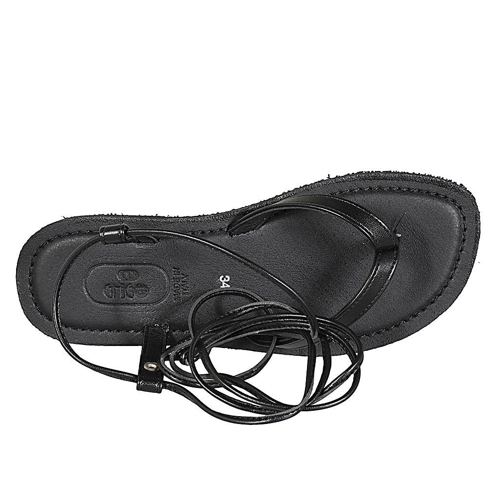 Sandalo infradito con laccio alla schiava da donna in pelle nera tacco 1 - Misure disponibili: 32, 42