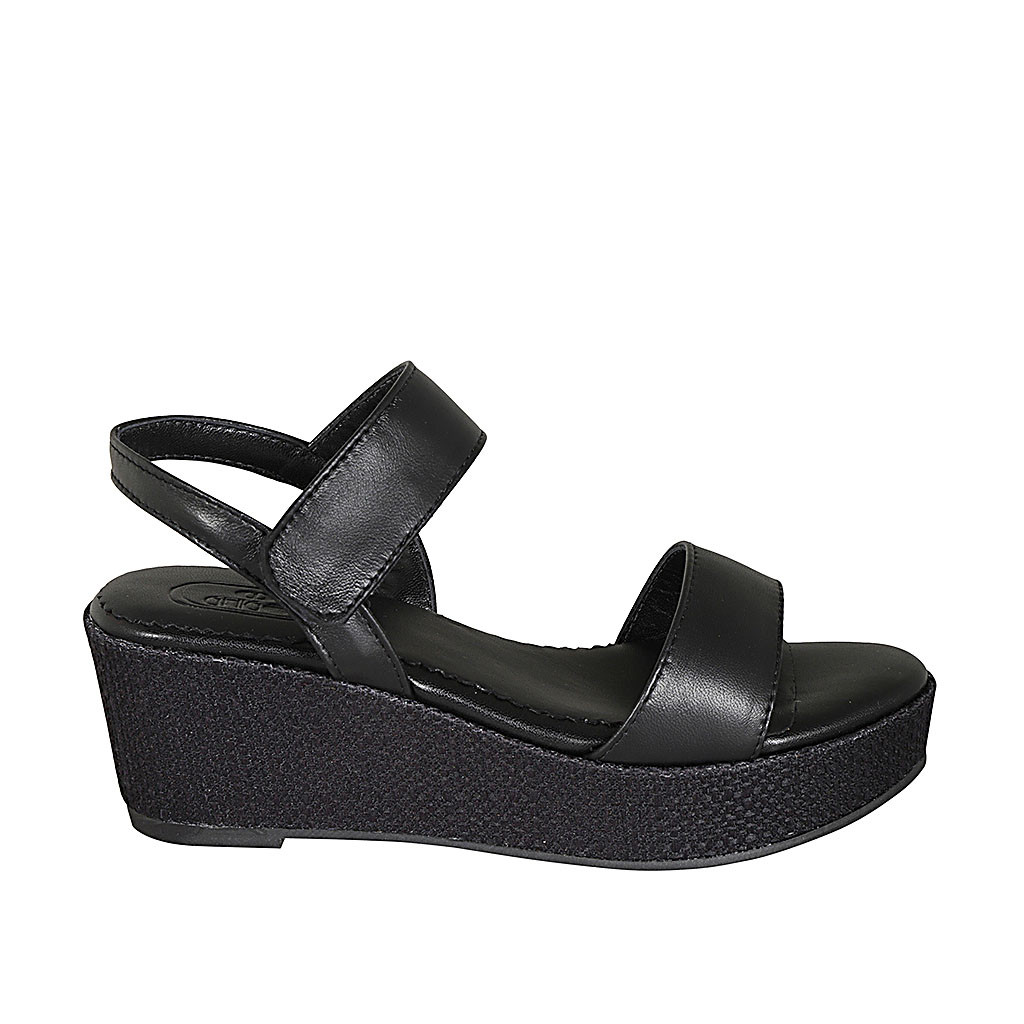 Sandalo da donna con plateau in camoscio cuoio zeppa 6