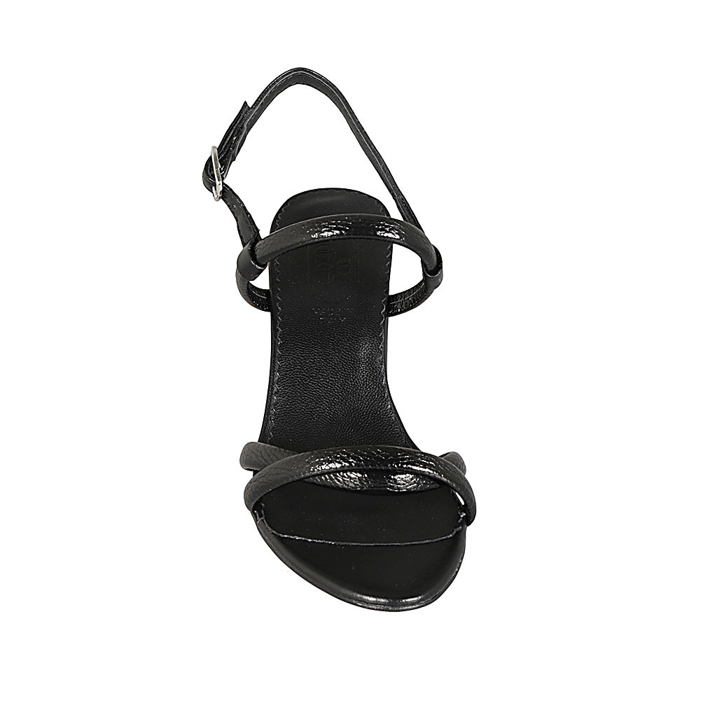 Sandalo da donna con cinturino in pelle nera tacco 8