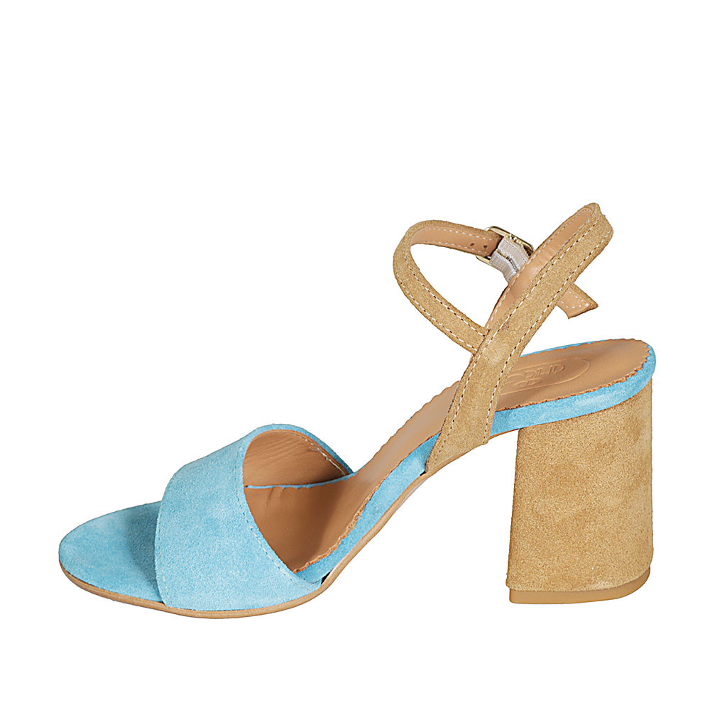 Sandalo con cinturino da donna con plateau in camoscio azzurro e bluette tacco 12